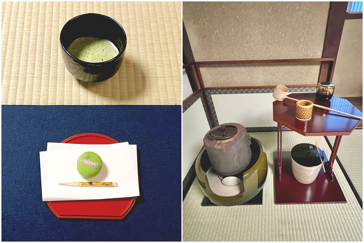 心地よい緊張感を味わいながらスタッフによる呈茶と季節の上生菓子を味わう茶の湯体験。zoom