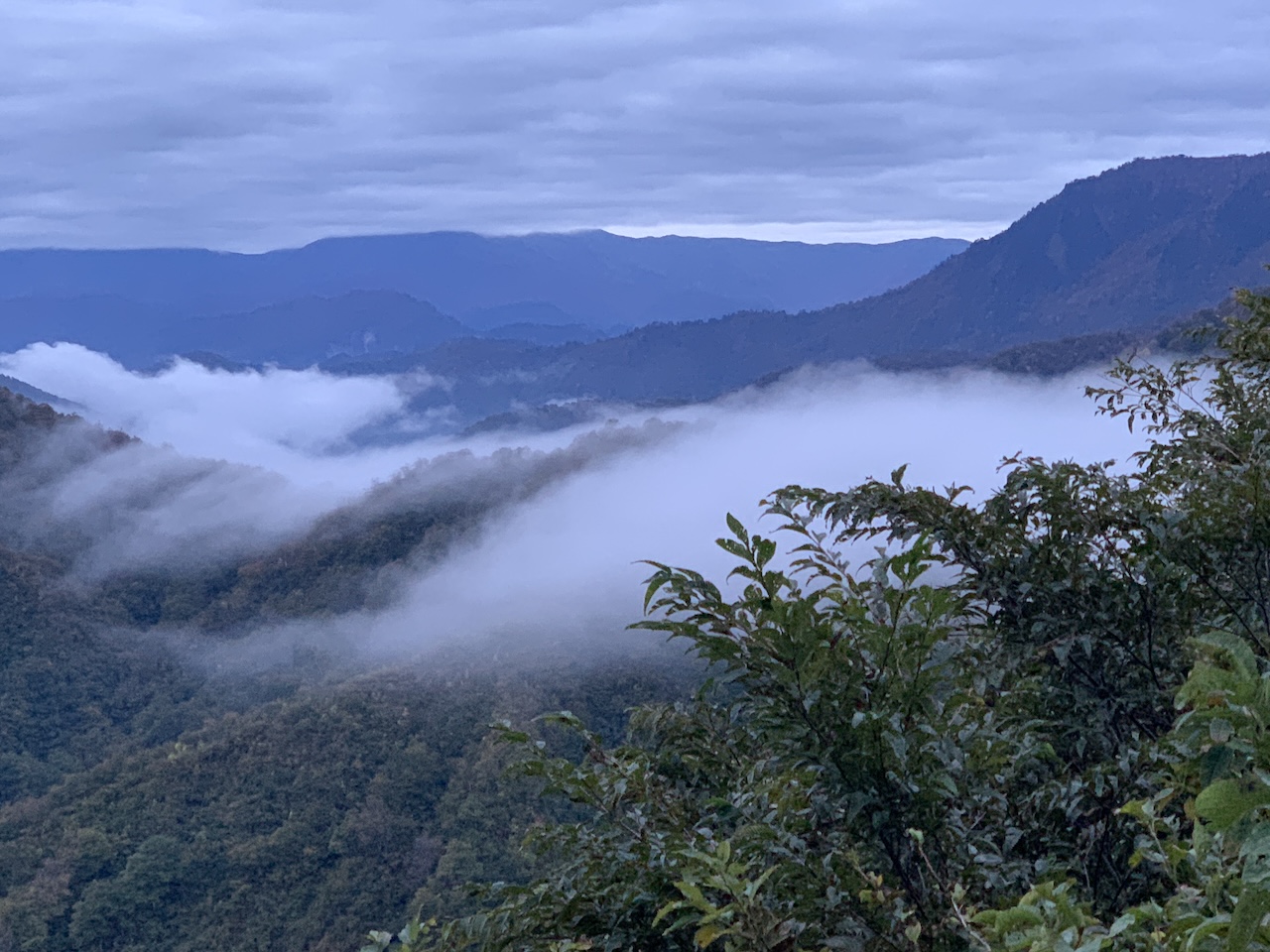- 朝4時、宿を出て夜明け前の枝折峠(しおりとうげ)へ向かった。山頂にはすでに多くのカメラマンがベストポジションを確保して、空が明るくなるのを待っていた。ここは、奥只見湖で発生した雲海が山々を越えて谷へと流れ落ちる光景が見られる。まるで雲が滝のように流れ落ちているように見えることから「滝雲」と呼ばれている。雲は動いているので、まさに自然が見せる奇跡の瞬間といえる。