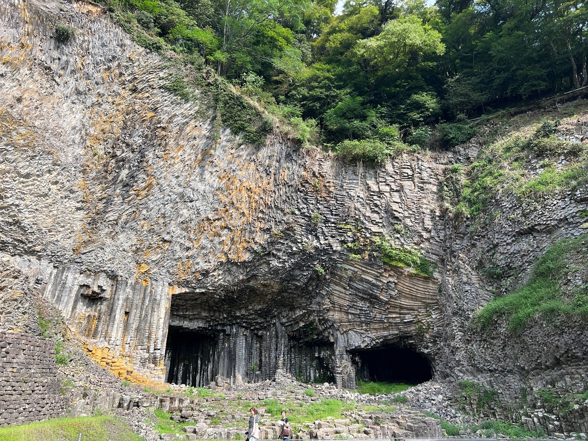 山陰海岸ジオパークの入り口にあるのが「玄武洞公園」。約160万年前の火山活動によって形成された柱状節理と呼ばれる、圧巻の光景を眺められる場所です。柱状節理とは、火山から噴出した溶岩が冷えて固まる過程で六角形の柱状に規則正しい割れ目が入ったもの。火山国の日本各地で見られますが、玄武洞公園はそのスケールの大きさで知られています。