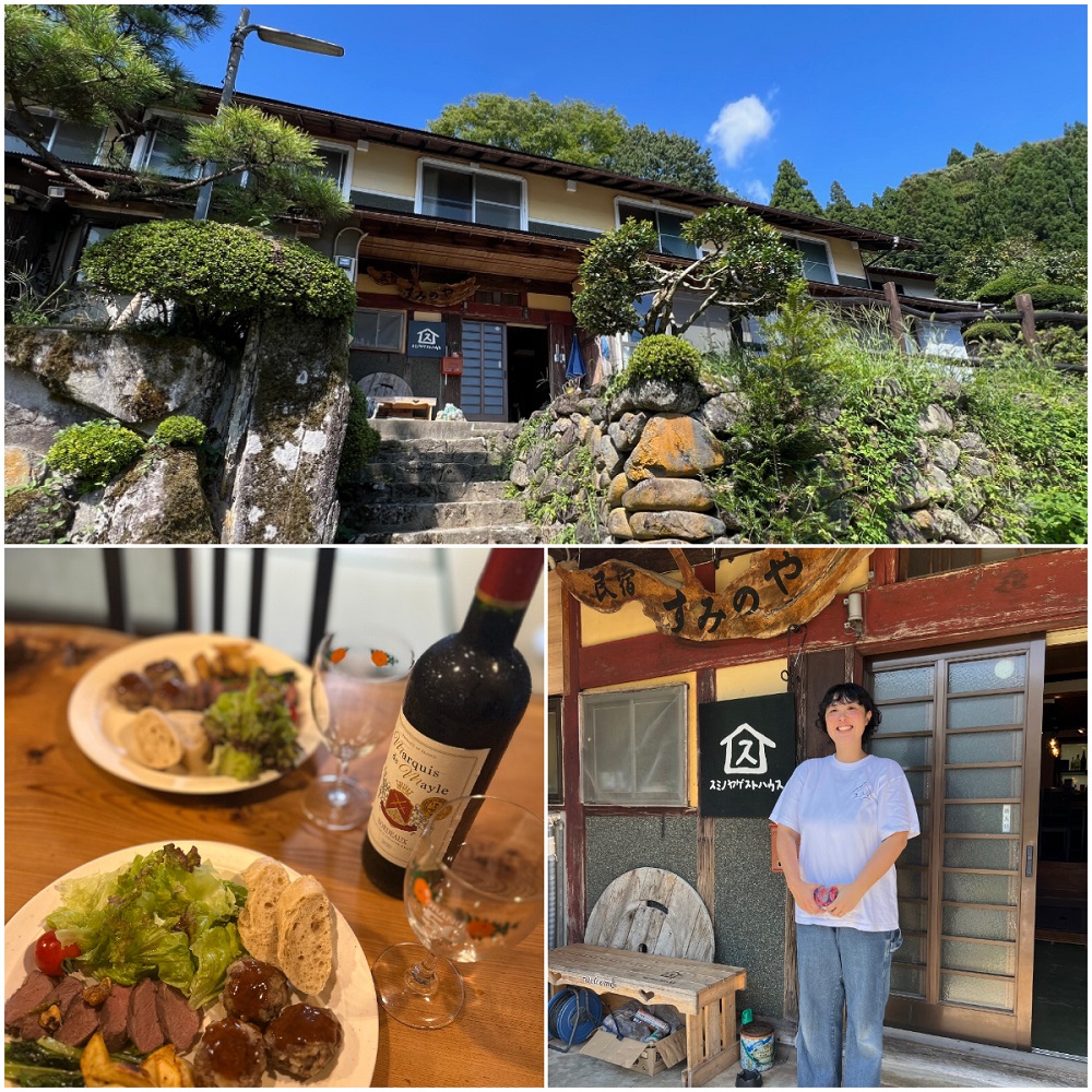 - 地元出身の田尻和幸さんと、妻の茜さん(写真下)が営む「スミノヤゲストハウス」。食事はジビエ料理とともに庭のレンガ窯で焼いたピザが自慢。