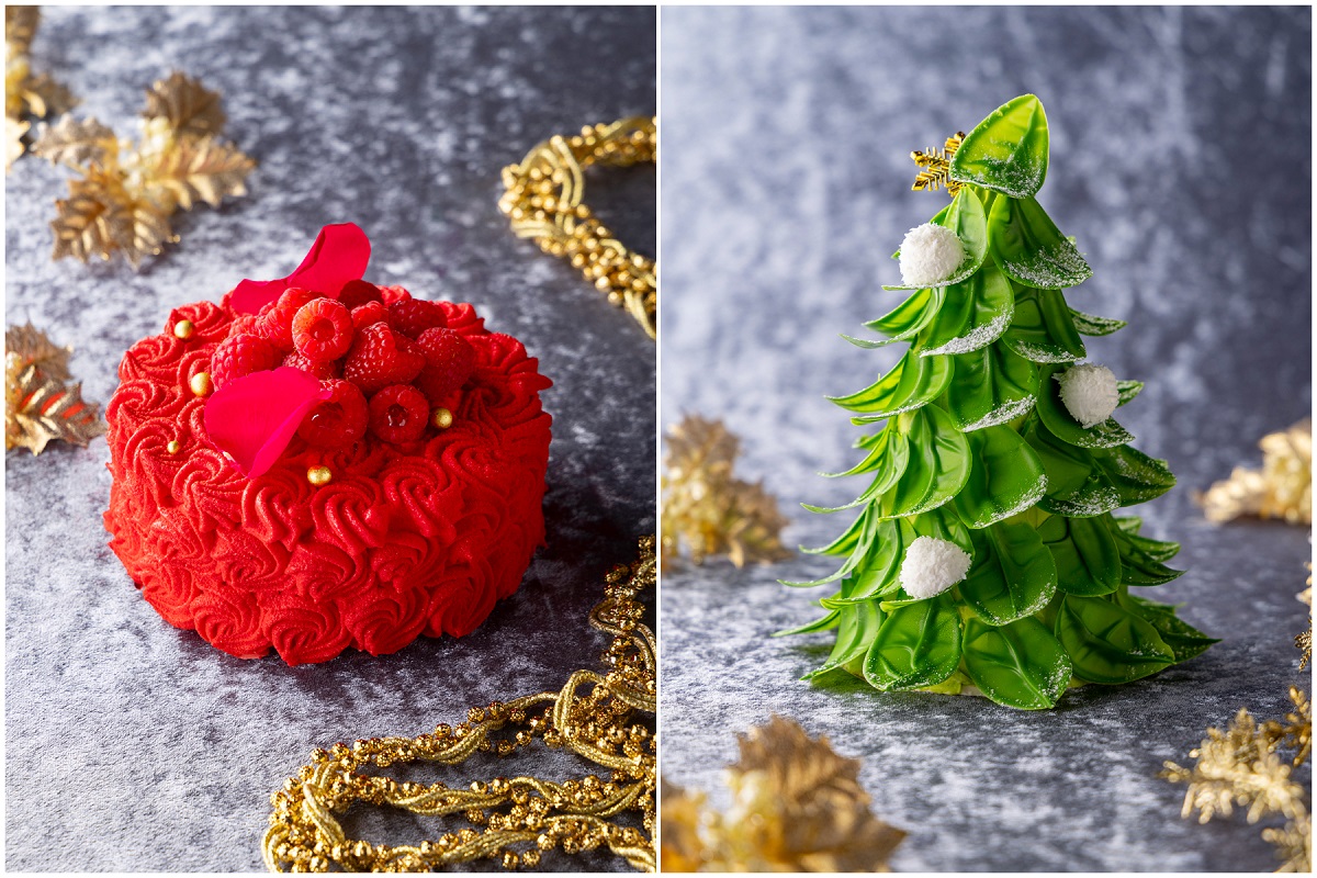 - 2種類のクリスマスケーキは、左/Ruby Blossom6,800円、右/Emerald Forest7,500円。(各税込み)