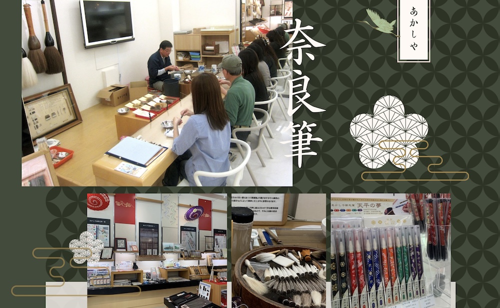 - 今回訪れたのは、奈良市南新町に本社を構える筆専門メーカー「あかしや」である。創業は江戸中期にさかのぼると伝わり、約300年の伝統を受け継ぐ老舗として知られている。書道用・日本画用の筆のほか、化粧筆や筆ペンなども手がけ、「奈良筆」のブランドを広く展開している。