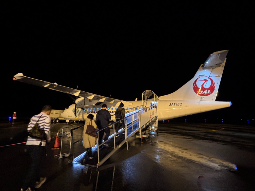 やがて、JALから搭乗開始の案内が流れると、ロビーは安堵の空気に包まれました。羽田までの乗継となる手荷物検査を終えてエプロンに出ると、そこには駐機するATR42-600型機が待っていました。不安を乗り越えて対面したその機体は、いつも以上に愛おしく、頼もしく感じられたものです。