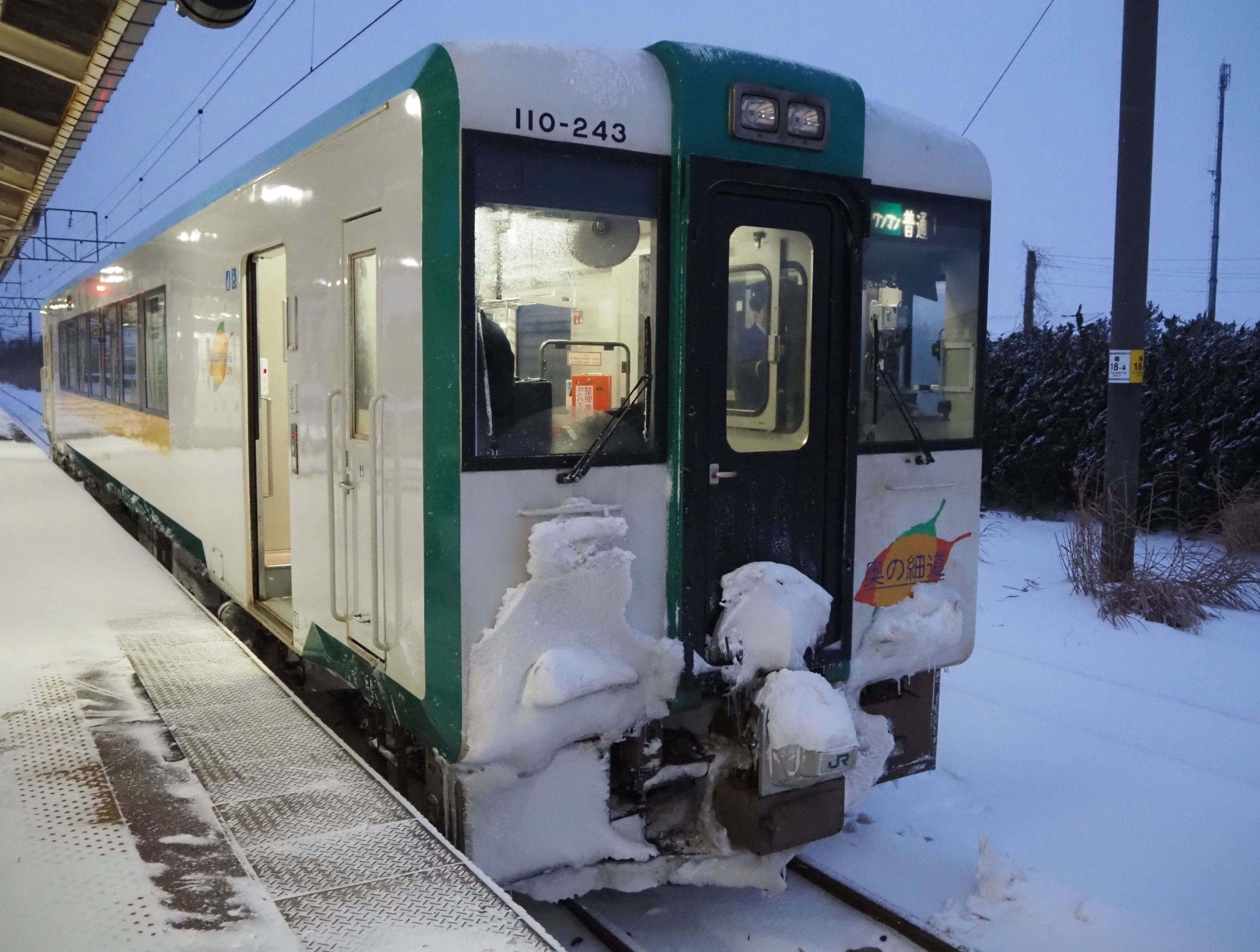 乗車しても、聞こえてきたのは「新庄行きワンマンカーです」という女性の声だからだ。用意している自動放送が酒田発新庄行きのバージョンしかないからだ。そこで、運転士がマイクを握って「この列車は余部行きです。余部から先、新庄方面は本日大雪のため運休となっています。ご了承ください」とフォローした。