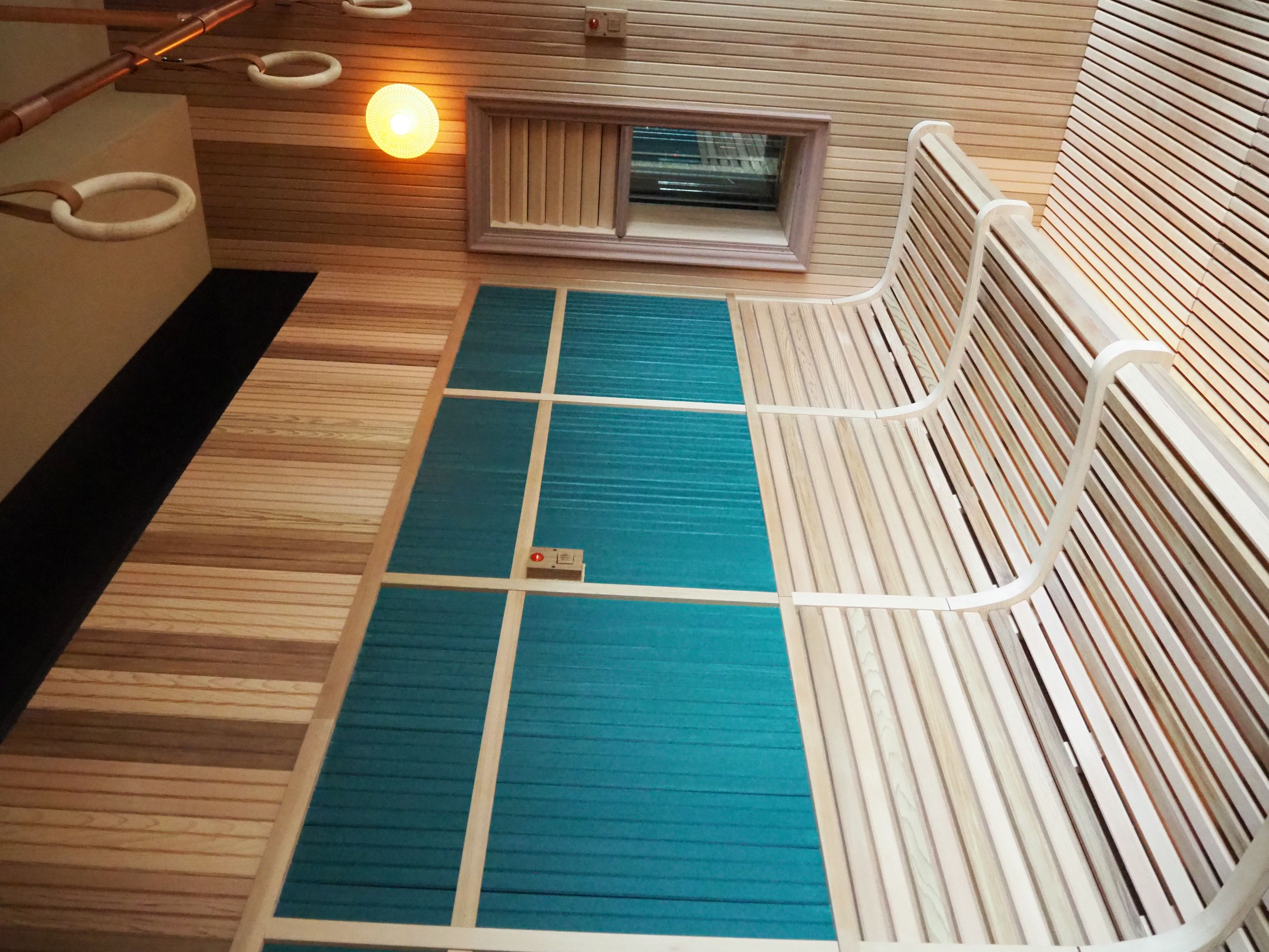 このビルの4階に出店するオークランド観光開発(愛知県春日井市)の「サウナメッツァ大井町トラックス」はサウナからのトレインビューを楽しめ、男性用浴室はつり革を設けるなど通勤電車の車内を模した「トラムサウナ」のデザインにしている。