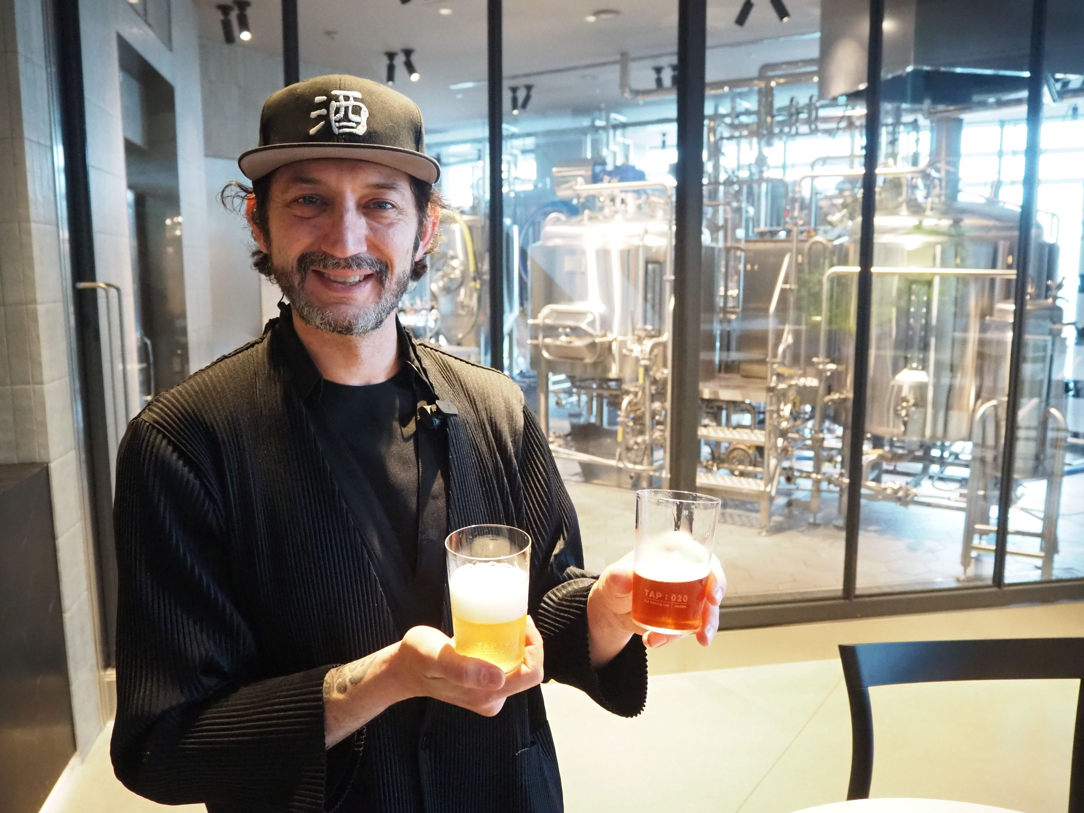 「本当に広いお店ですね」と小川珈琲関係者に話しかけると、「準備作業が大変でしたよ。クラフトビールまでここで造っていますからね」と教えられた。ビールを提供するカウンターに案内されると、ガラス越しにはステンレス製の発酵タンクと熟成タンクが確かに並んでいる。