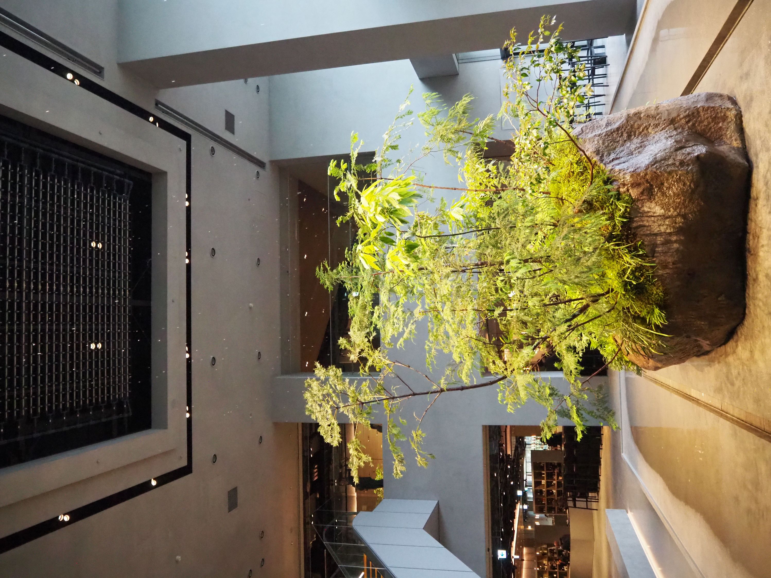 2階の中央部には神奈川の真鶴半島で採掘した直径約5メートルの岩があり、その上には日本の山々で見られる植物を自生している。3階との間は高さ約6メートルの吹き抜けになっており、植物のために天井から水がしたたり落ちている。毎時ちょうど(00分)になると「落ちる水の量が多くなる」(ルミネ)という。