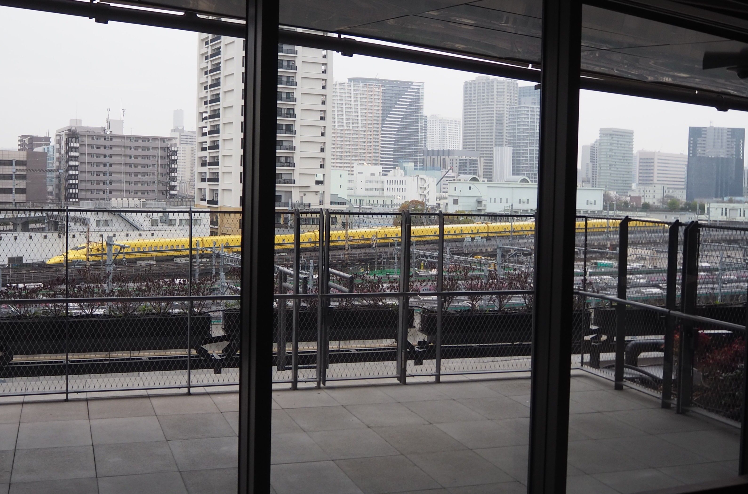 6階から屋外に出ると都会では珍しい足湯があり、東海道新幹線や、JR東日本の車両基地「田町車両センター」を一望できるトレインビュースポットとなっている。隣接地では、1872(明治5)年に開業した新橋(現在の汐留)と横浜(現在の桜木町)を結ぶ日本初の鉄道路線に使われた石積みの構造物「高輪築堤」の第7橋梁の遺構が見つかっており、保存施設として2028年春に公開される予定だ。