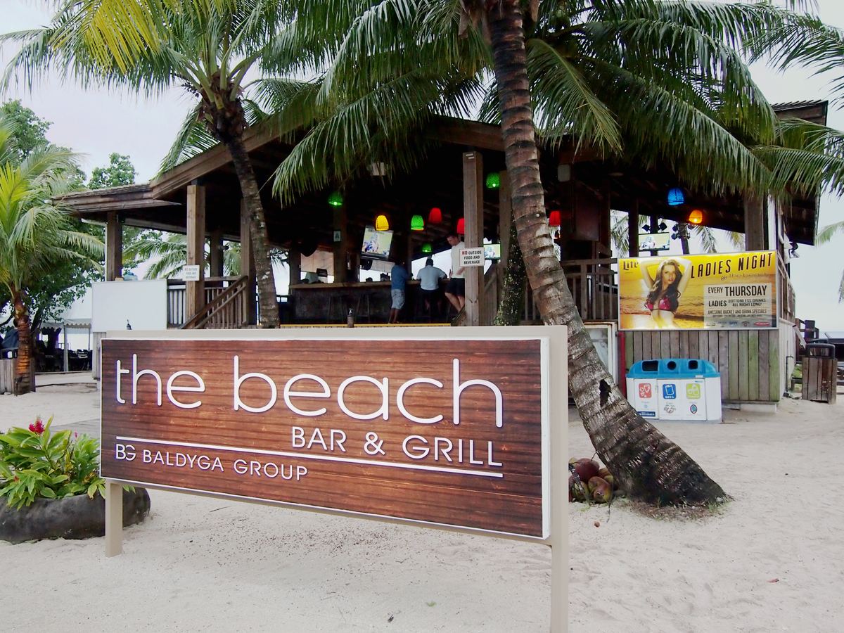 - タモン湾の北端、ガン・ビーチにある『The Beach Bar & Grill (ザ・ビーチ バー&グリル)』は、その名のとおりオン・ザ・ビーチのレストラン。ウッドデッキの下がすぐ砂浜になっていて、昼間は併設の広場でビーチバレーも楽しめます。