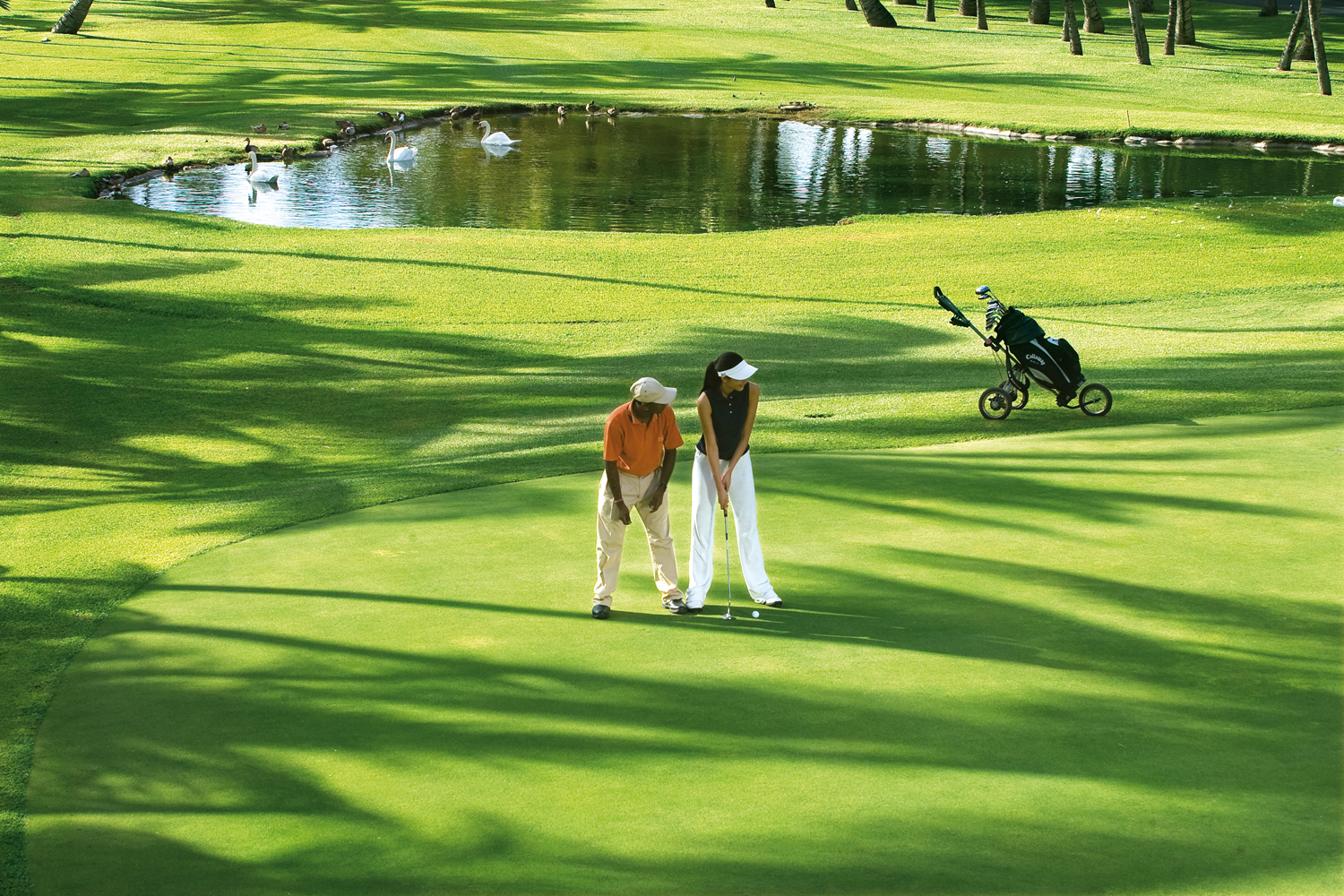 ゲイリー・プレイヤー設計の9ホールのゴルフコーはゴルフ好きにはたまらない。宿泊客は無料でプレーできる