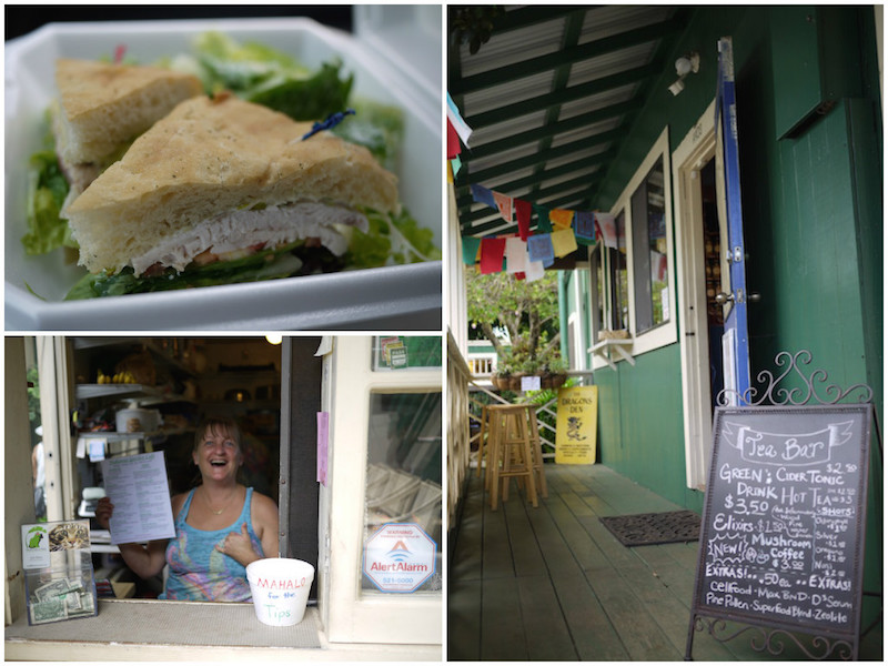 - マカワオの町では野生化したニワトリを多く見かける。ニワトリを追いかけて脇道を入ったら「Makawao Garden Café」というお店があったので、少しお腹も空いていたこともあり、早めのランチとしてサンドイッチを食べることに。新鮮なマウイ産の野菜もたっぷり。その近くには紅茶専門店「Tea Bar」もあり、アドバイスを受けながらブレンドされた紅茶を堪能することができる。