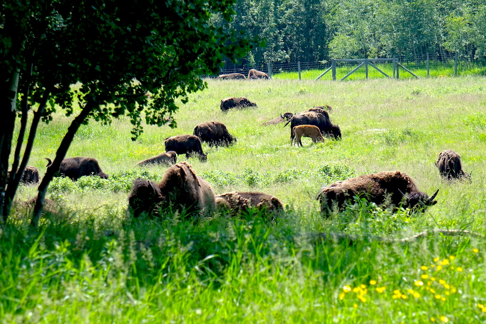 ここにはアルバータ州に縁のあるバイソン(バッファロー)も生息しています。実はバイソンは一度絶滅の危機に瀕し、100年もの間保護活動が行われていたのだそうです。こうやって元気に暮らす姿を間近で見られるのは、そんな努力があったからこそ。