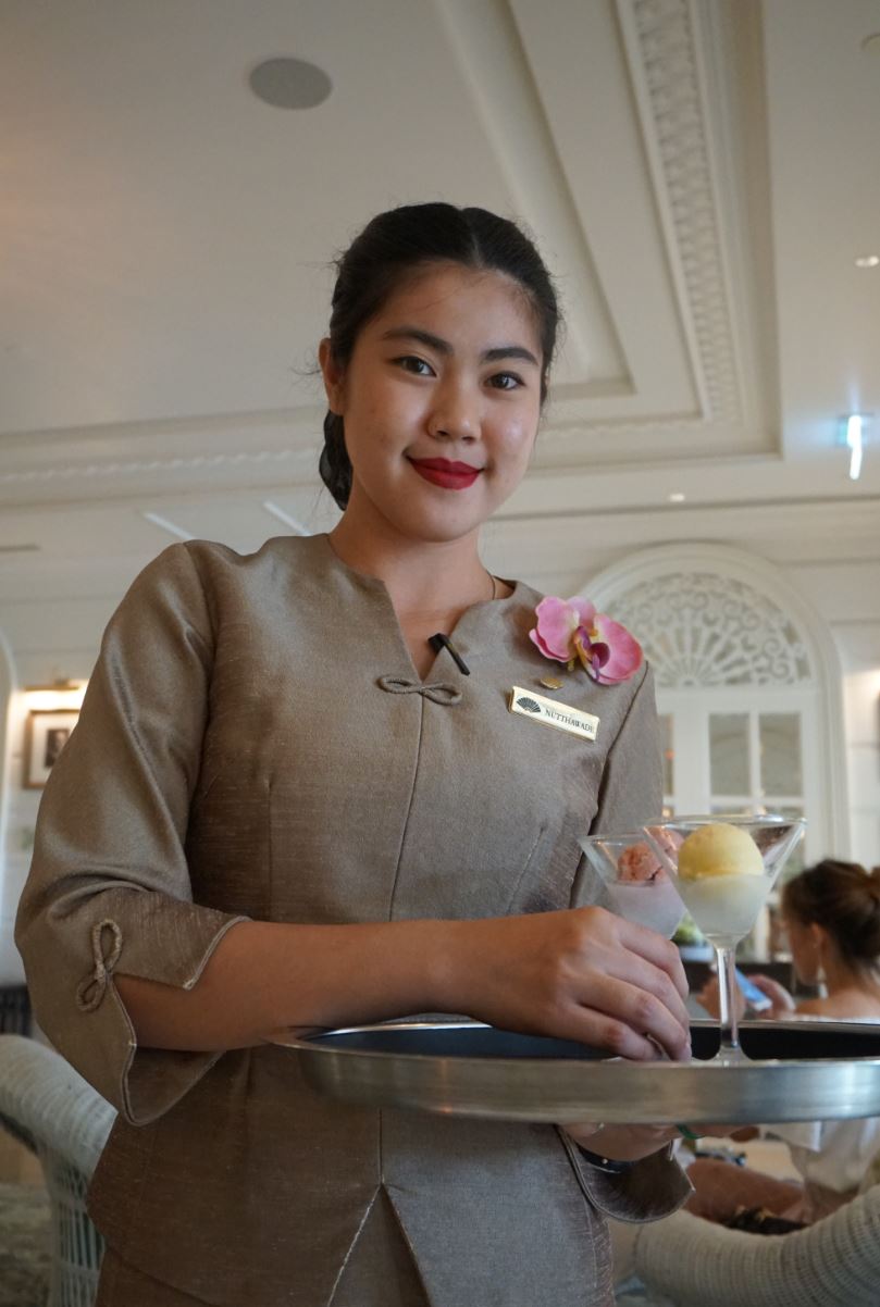 こうしたサービスを実施する高級ホテルは少なくないが、300室を超えるホテルでは徹底するのは難しいこと。しかしながらここでは当たり前のようにそれが行われている。というのも、マンダリン オリエンタル バンコクでは勤続年数実に70年超という、伝説のスタッフがいて、彼女の接客スタイルが従業員の手本になっているのだという。