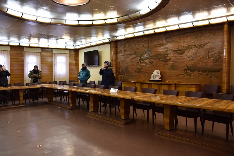 光が反射して見にくいですが、砕氷船内部の構造はこのように複雑