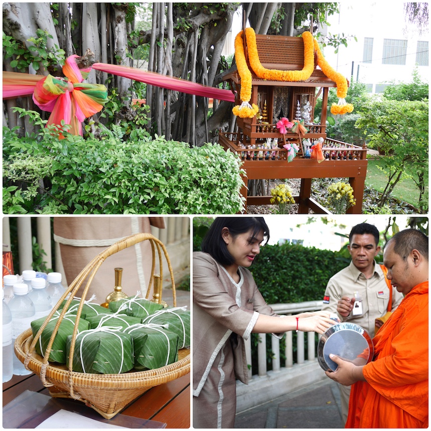 - また、仏教国タイならではの托鉢体験の機会もあります。信仰心の深いタイでは僧侶へ食事を寄進する托鉢の習慣がいまもなお残っています。ホテル近隣のお寺から訪れる僧侶へホテルのシェフが用意した食事を渡し、僧侶に読経してもらいます。私も体験してみました!タイ仏教の世界観に触れ、朝から静寂な空間で身も心も清められました。