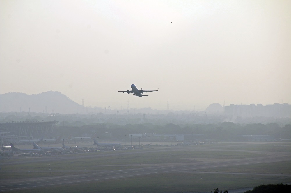 着陸前には、降下中と到着した空港内での写真撮影は禁止とのアナウンスが流れます。インドでは、国防上の理由から、空港だけでなく鉄道駅などでも撮影が禁止されているようです。時刻は17時50分。機窓で見るベンガル湾に面した街も夕暮れの時間になっていました。