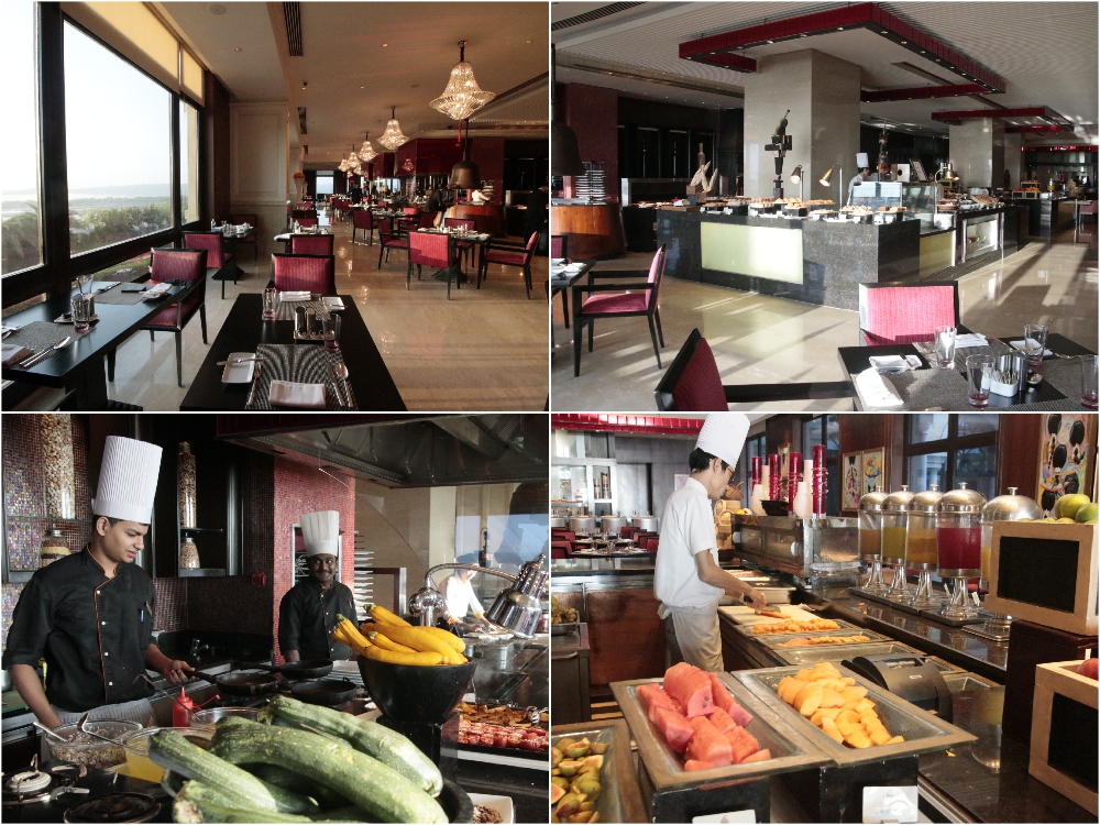 インド料理を中心に洋食も多く並びます。大きな窓からは朝陽で輝く海辺の様子を眺めることができ、満足度を高めてくれます。ライブキッチンがいくつもあり、オムレツだけでなく、インド式クレープの「ドーサ」も作ってくれます。フルーツも充実しており、朝陽が差し込む明るいダイニングで食べる朝食は、活力がみなぎります。