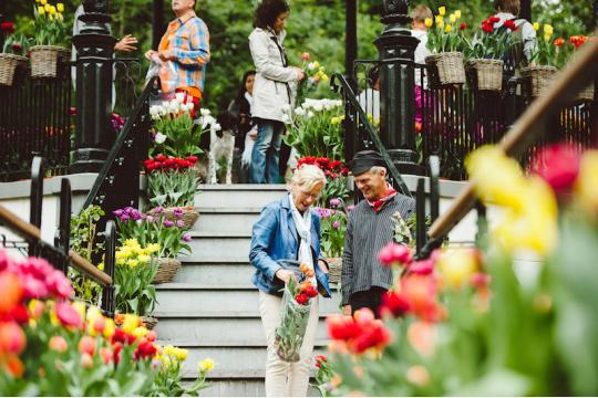 オランダのチューリップシーズンは「チューリップの日(National Tulip Day)」にアムステルダムのダム広場で1月第三土曜日に正式に始まる。オランダ国内のチューリップ栽培農家たちが主催者となり、ダム広場にチューリップ庭園が特別に造られる。この庭園のチューリップは、誰でも無料で摘み取って良いのだそうだ。