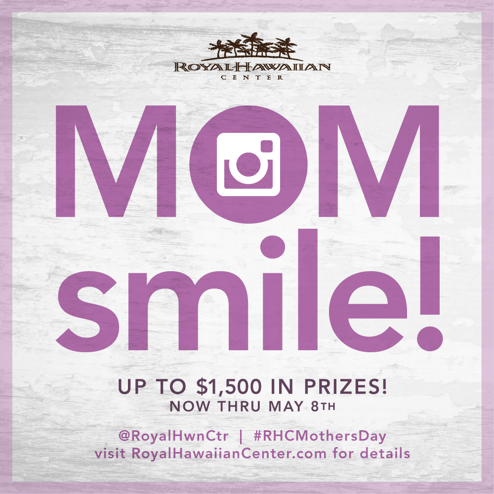 ロイヤル・ハワイアン・センターでは、母の日Instagramフォトコンテストを実施します!お母さんと写っているご自身の写真、またはお子さんと写っているご自身の写真に@RoyalHwnCtr と#RHCMothersDayのタグをつけてInstagramでご投稿ください。応募作品から厳正なる審査の上、最優秀賞を1名様に、母の日に贈る$1,500相当の豪華プレゼントを差し上げます!応募締切は2014年5月8日。皆様のご応募をお待ちしています!