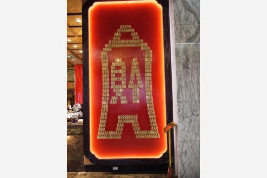 貨布とは、西漢末期に使用された貨幣のひとつ。明代時代には財運アップと言われていた。1952年のホテル開業当初、圓山大飯店では、財と富の象徴である貨布の形をしたキープレート(鍵)を客室用に使用していた。この特注の銅製キープレートはずしっと重く、特徴あるデザインが財を呼び寄せるという意味が込められているため、多くの宿泊客が財運をもたらすと信じ、中にはこっそりと持ち帰ってしまう宿泊客もいたようだ。