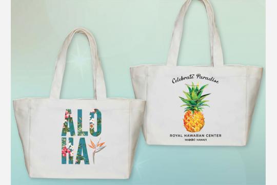またホリデー期間中、センター内のショップやレストランで、$250以上お買い上げ頂いた方に、いずれも大好評の「バード・オブ・パラダイス柄ALOHAプリント」または「パイナップルプリントのセレブレートパラダイス」の2つのデザインから選べるホリデー限定オリジナルトートバッグをもれなくプレゼント中です。1階ロイヤルグローブ前のヘルモアハレ&ゲストサービスまで同日レシートをお持ちください(合算レシート可)。同キャンペーンは、在庫がなくなり次第終了となりますので、お早めに!