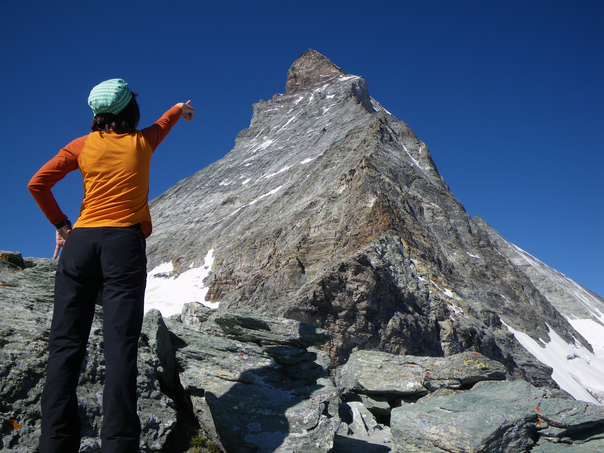 目的地のヘルンリ小屋は、写真を見ると「えっ!?まさか、あそこ? あんなところまでいけるの!?」と思うような場所に建っていますが、しっかりとした整備された道が小屋まで続いていますのでご心配なく。小屋からは、間近に迫るマッターホルンの頂上までを見ることができるのがすごいところ。