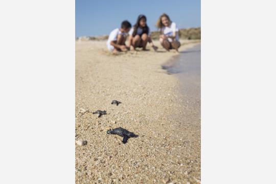 孵化後最初の数分間は、ウミガメの赤ちゃんの人生の中で最も危険な瞬間。太陽の熱にさらされながら、天敵に襲われる危険を伴う海岸を横断しなければならない。そのため、産卵の瞬間から安全のために巣の周りにフェンスを立て、孵化を見守っている。その後、ウミガメの赤ちゃんを安全な場所に保護し、天敵から一時的に保護する。海に戻すのに十分な大きさにカメが成長したことを確認でき次第、赤ちゃんカメをインド洋の栄養のある海に放流する。