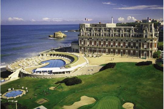 120年に渡りビアリッツのビーチに抱かれてきた154室のオテル・デュ・パレは、ビアリッツを「国王のためのリゾート、リゾート界の女王」として発展させようと計画したナポレオン三世が建設した宮殿(別荘)が起源です。オープン以来、チャーリー・チャップリンやアーネスト・ヘミングウェイをはじめ、文学界や芸能界から多くのゲストが滞在してきました。客室やスイートは大西洋を望み、内装にはビルマのチーク材、カッラーラの大理石、イタリアのガラス・モザイク等が用いられ、ホテルが誕生したベル・エポック時代を反映しています。さらに館内を飾るアンティーク家具、20世紀初めのラリック・スタイルのランプ、金のキャビネット、シャンデリアが荘重な雰囲気を演出しています。またオテル・デュ・パレの室内装飾生地や布地は全てオリジナルデザインが施され、ホテルの専用工場にて手作業で作られています。3つあるレストランの一つはミシュランガイドでも星を獲得しているヴィラ・ウージェニーで、地元で獲れるシーフードや農産物を利用する美食フレンチレストランです。ウェルネスを重要視するオテル・デュ・パレには5階建ての大規模なスパがあり、15メートルの室内プール、サウナ、ハマム、ヘアケアサロン、設備の整ったジム、スパ・トリートメント・ルームが完備されています。