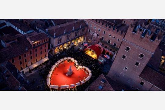 ロミオとジュリエットの舞台で、今もジュリエットの家、ロミオの家が残るイタリアヴェネト州のヴェローナは、中世の町並みが残り、古代ローマ時代の円形競技場(アレーナ・ディ・ヴェローナ)が街の象徴です。2000年には世界文化遺産にも登録された美しくこぢんまりとしたヴェローナでは、恋人たち向けのイベントが数多く企画されます。特に、2月の「Verona in Love」は数年前から続く人気のイベントで、街の中心地に位置する(ジュリエットの家もすぐそば)シニョーリ広場にハート型に露天が並ぶマーケット、スイーツの試食コーナー、ライブミュージックイベントなど盛りだくさんです。
