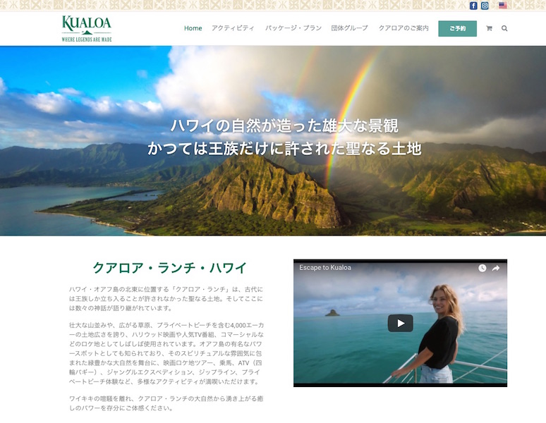 クアロア・ランチ・ハワイ(以下、クアロア)は、日本語公式ウェブサイト(http://www.kualoa.jp/)のリニューアルを実施しました。
