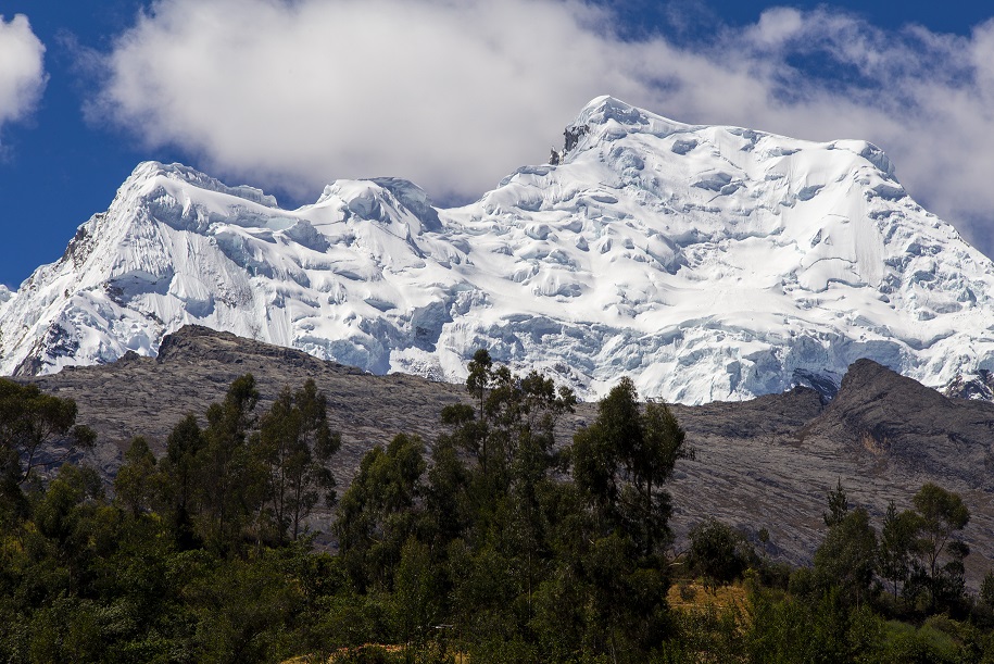 ユネスコ世界遺産にも登録されている、世界で最も高い位置にある国立公園「ワスカラン国立公園」に位置し、アンデス山脈ブランカ山群に属します。ペルー国内最高峰の山で、ラクダ科の動物で、高級毛織物で人気のビクーニャやジャガーなどの野生動物が生息しています。周辺には、ワンドイ山(6,395メートル)やチョピカルキ山(6,345メートル)などの標高が6,000メートルを超える高峰もそびえています。