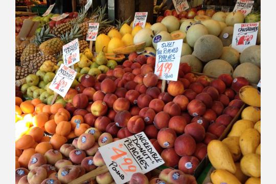 「パイク・プレイス・マーケット(Pike Place Market)」は、地元シアトルに根付いたファーマーズマーケットとして、街の中心地、ウォーターフロントからもアクセスが良く、シアトルで一番人気の観光地となっている。近隣には、シアトル美術館やセンテニアルパークなどがあり、合わせて観光することができる。