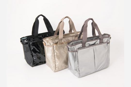 トラベルトートは、光沢感のあるブラックパテントと細かなラメが輝くゴールド、そしてシルバーのグリッターの全3色で展開。内生地はバッグの中でも荷物が探しやすい明るい色合いをチョイス。バッグの中は、たっぷりの収納力があり機内持ち込みバッグ&現地持ち歩きバッグとして活躍する大きめサイズ。