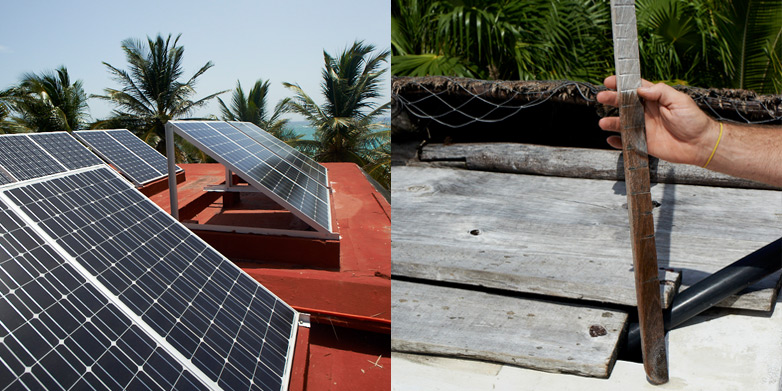 そんな地元住民の一人が、海に面した「カーサ・デ・ラス・オラス(Casa de las Olas)」のオーナー、ジェームス・グリーンフィールド氏。環境保護に力を入れている彼は、ゲストルーム全5部屋のみのこのホテルにソーラーパネルと、20,000ℓ対応の雨水資源化用タンクを搭載。完全に太陽光発電のみで運営されているのは、トゥルムでもここだけ。客室には生物分解性の石けんやシャンプーを用意しています。