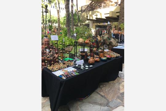 ロイヤル・ハワイアン・センターの文化ディレクター、モンテ・マッコマーは「ハワイの起業家やデザイナー、アーティストによるユニークな商品を集めたロイヤルサンデーマーケットを通して、ハワイのスモールビジネスをサポートできることを嬉しく思います。渡航規制により旅行者のいない空いたワイキキで地元の人たちに自転車やジョギング、ウォーキング、ショッピングやダイニングなどを楽しんでもらおうとホノルル市が7月5日までの毎週日曜、カラカウア大通りを歩行者や自転車に解放する『カラカウア・オープン・ストリート・サンデー』に合わせて開催されるロイヤルサンデーマーケットは、カマアイナにとってもワイキキの魅力を再発見してもらえる素晴らしい機会となっています」と述べています。参加ベンダーは週によって入れ替わり、ハンドメイドジュエリーやメイドインハワイのソープやグルメフード、アートなどを購入することができます。