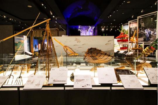 A展示室には、世界初の展示となる半身半骨のツダンスキーゾウ標本や、地層模型と地層の剥ぎ取り標本など、400万年にわたる琵琶湖の自然環境や気候の変化を体感できる。全長7.5mとなる龍がナビゲートするB展示室では、丸子船のAR展示が登場し、 「森」「水辺」「湖」「里」をテーマに、人は自然とどのようにかかわり暮らしてきたのかを紹介。