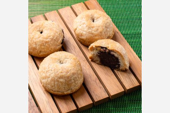 餡が入った饅頭は、ハワイのローカル文化に溶け込んだスイーツの代表。ビッグアイランド・キャンディーズでは、滑らかなペースト状のこしあんを使い、特製のフレーク状のパイ生地で包んでいる。
