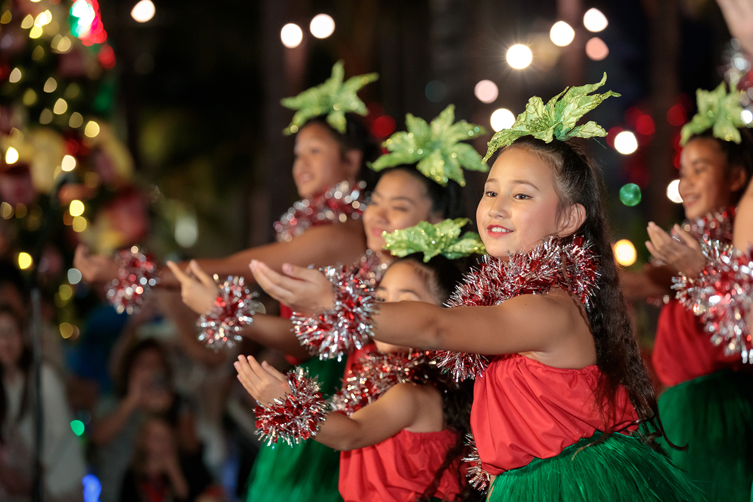 ホリデーキックオフイベントでは、ストーリーブックエンターテインメントのホリデーキャラクターたちによるステージパフォーマンスに続いて、ハワイアンサンタがカラカウア通りからワイキキトローリーに乗って会場に到着。サンタとキャラクターたちのカウントダウンでツリーにライトが灯され、プルメリアの花が雪のように舞い降りる映像をハワイアン音楽とフラのライブエンターテインメントとともにFacebookライブで世界中の人々にお届けします!地元の可愛らしいケイキフラダンサーたちによるパフォーマンスやハワイアンホリデーソングのライブ演奏もフィーチャーされます。