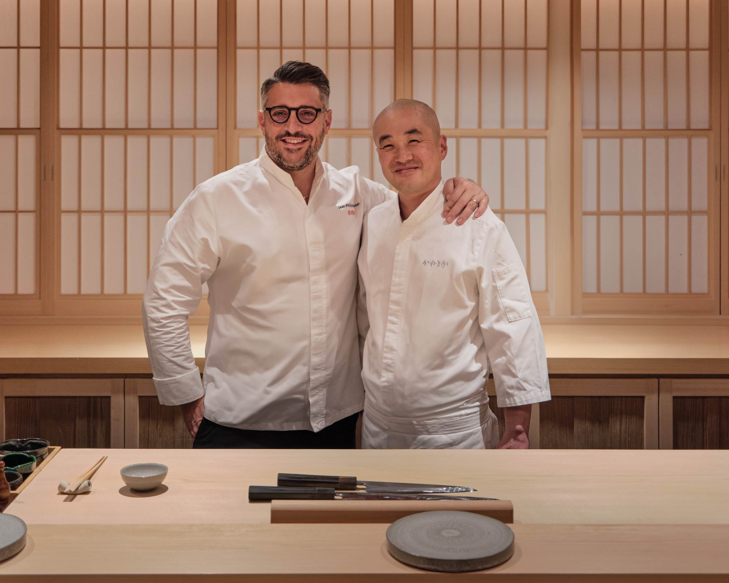 ミシュラン3つ星レトラン、アラン・デュカスat ザ・ドーチェスターのシェフ・ジャン=フィリップ・ブロンデと鮨かねさかチームが、江戸前寿司の繊細な芸術性とフランスのオートキュイジーヌの洗練された技を調和させたメニューをご披露します。シトラスブールブランソースとキャビアを添えた潜水手採りホタテ貝、ネギのコンフィとペリゴールソースを添えた和牛フィレなど、両店のシグネチャーメニューを中心に、厳選されたメニューをご堪能いただけます。