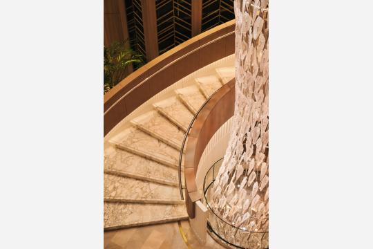 ダイヤモンズインターナショナルの船上ブティックで注目されるのが、シグネチャーダイヤモンドであるクラウン・オブ・ライト。特許取得の90面体カットを特徴とするダイヤモンドは、つい財布のひもを緩めてしまいそうな抗しがたい輝きを放っています。