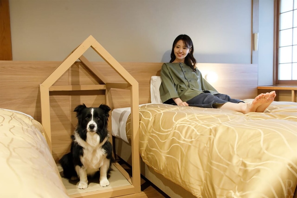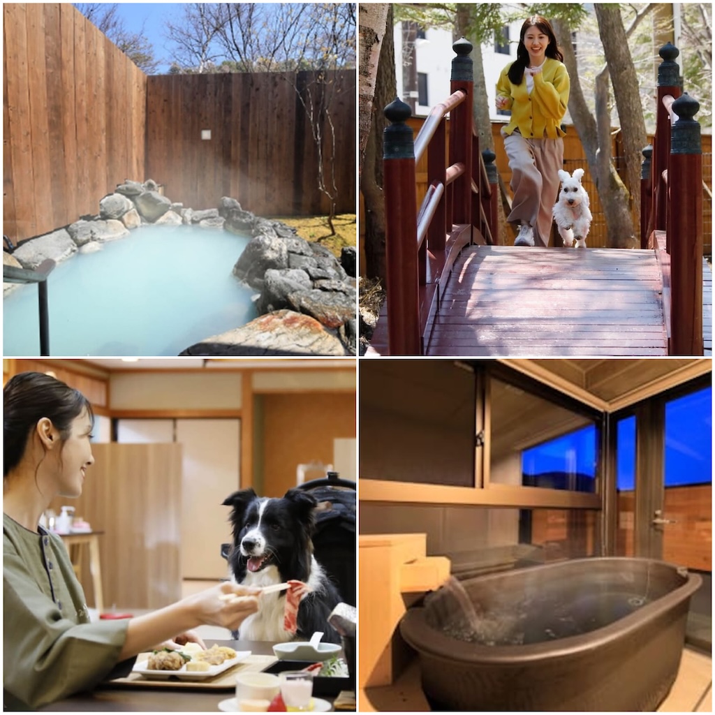 客室は、半露天風呂付き客室や和室・洋室など、滞在スタイルに合わせて選べる5タイプ。全客室に豊富な愛犬用アメニティーを完備。家具や床には傷や汚れに強い素材を使用し、部屋の中でも安心して愛犬と一緒に過ごせる。また、館内には四季を感じる中庭ドッグラン(屋外)と屋内の2種類のドッグランを完備。愛犬と一緒に食事ができるレストラン&専用ビュッフェ、トリミング&ドライルーム、わんちゃん絵馬、わんおみくじ、フォトスタジオ、おやつワゴンなど、さまざまな和のおもてなしを用意しており、日光ならではの自然豊かな情景の中で、飼い主にも愛犬にも心地よい“和のひと時”を過ごせることだろう。