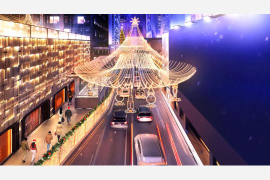 そして、クリスマスタウンの楽しい雰囲気を広げるように、チャーター・ロードは「スターライト・ブルバード」として、幻想的に変貌を遂げます。道路沿いの30本以上の街路樹にはイルミネーションが施されます。