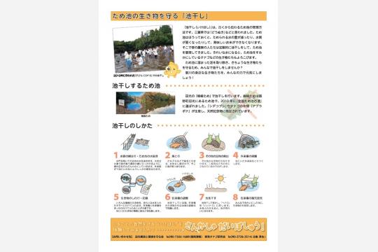 イベントでは、たも網やバケツを持参して生き物を観察したり、地元の自然環境について学んだりすることができる。なお、低学年の子どもが参加する場合は保護者の付き添いが必要とされている。池干し終了後は、参加者が取り除いた泥を観察しながら、水辺の生き物と触れ合うなど、体験の振り返りタイムも用意されている。地域の自然を自らの手で体験することで、環境保全への関心も深めることができる。