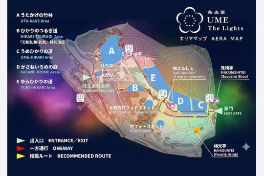 「UME The Lights 2026」は、偕楽園本園を舞台に、園内各所がテーマ性を持った光で演出される。昼とは異なる静けさの中で、梅林や竹林、園路を歩きながら鑑賞する構成が特徴となっている。