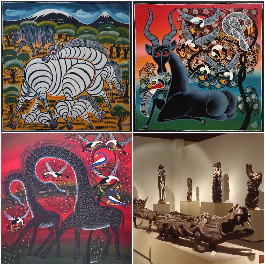 ティンガティンガ絵画は1960年代後半にタンザニア首都ダルエスサラームでエドワルド・サイディ・ティンガティンガ氏によって生み出されたポップアートの絵画スタイル。鮮やかな色彩、平面的で装飾的な構成が特徴とされる。サバンナのゾウ、キリン、シマウマなど動物たちがユーモラスに描かれ、現地の自然や暮らしを表現したものとして世界的に広がってきたとされる。展覧会ではこうした作品が多数紹介されることで、鑑賞者がアフリカの大地や動物の息づかいを感じる体験につながる内容である。