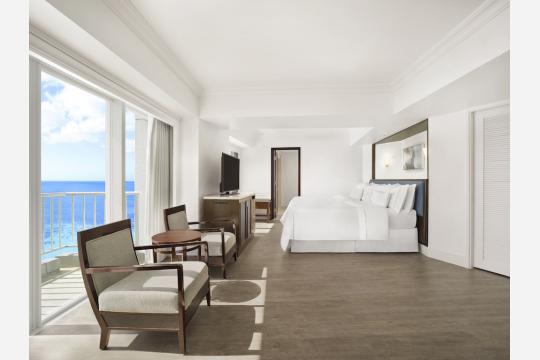 シンプルで使いやすい客室(430室)、西洋・東洋のグルメが気軽に楽しめる6軒のレストランやカフェ、24時間オープンのフィットネス・ジム、リモート・ワーク・スペース、子供の遊具をそろえたキッズ・クラブなど施設が充実している。ゆったりとしたプールが二つ、白浜のビーチに続く。
