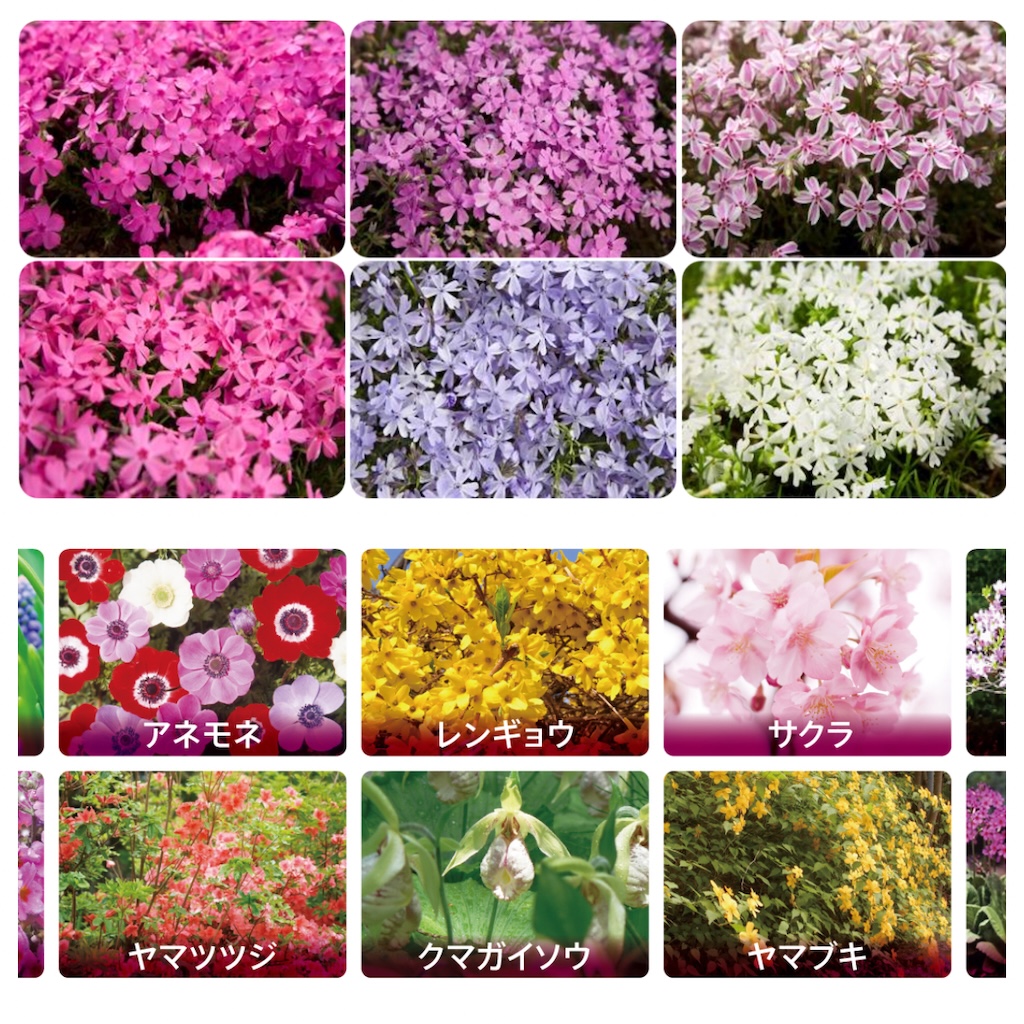 芝桜はピンク・赤・紫・白の色とりどりの6品種が咲き誇る構成で、まるで春色の絨毯のように、マックダニエルクッション、オータムローズ、多摩の流れ、スカーレットフレーム、オーキントン・ブルーアイ、モンブランの各品種が丘一面に広がる。開花状況により期間が変動する場合があるとされており、来園前に最新情報を確認しておこう。営業時間は8時から16時(時期により変動)、入園料は大人(中学生以上)1,000円から1,300円、小人(3歳以上)500円から700円(いずれも時期により変動)。
