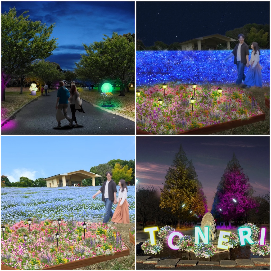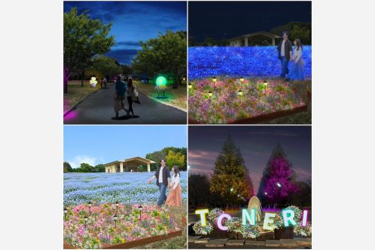 東京都と公益財団法人東京都公園協会、日比谷花壇は、都立舎人公園(東京都足立区)を舞台に、2026年4月10日(金)から26日(日)までの17日間、ネモフィラのライトアップイベント「『花と光のムーブメント』舎人公園 ~ネモフィラと百花の花景色~」を実施する。都内有数の広大な面積を持つ同公園で、昼は青いネモフィラの花景色、夜はライトアップによる光の演出が楽しめる構成となっている。