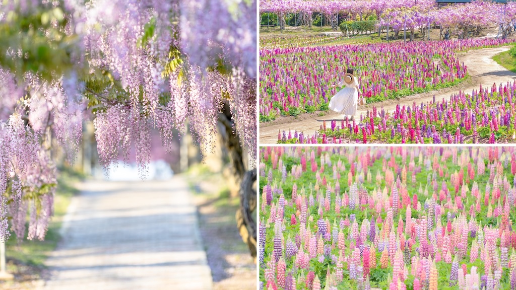 世羅高原は標高約350〜500メートルに広がる台地で、平地より遅い春の訪れが花の開花時期と重なる地域として知られる。チューリップ・ふじ・ルピナスと品種の異なる花を同じ高原内の複数会場でめぐれる点が、この時期の世羅の特徴と言えるだろう。両会場の最新の開花状況は、それぞれの公式サイトおよびInstagramで随時更新される。